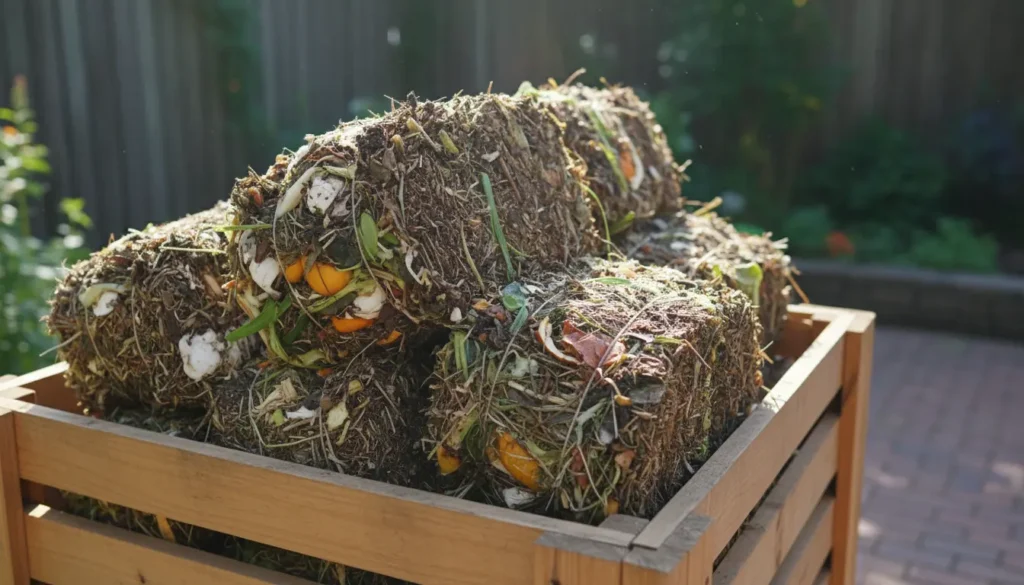 Compost is ready when it is dark, crumbly, and earthy-smelling. Sift out large pieces and return them to the bin for more breakdown.